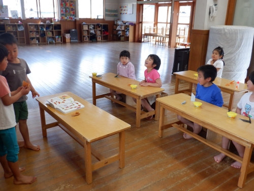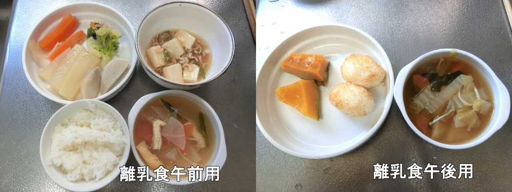 第一に食品に安全性には十分な配慮をしています。献立は旬の野菜を豊富に取り入れた和食を主とし、園内で調理される給食とおやつは素材そのものの美味しさを大切に、薄味で調理しています。調理室から伝わってくる音や匂いは、子ども達の食への興味や食欲を掻き立て、「今日のお昼は何かなァ~?」といった子ども達の会話も弾みます。